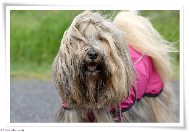 Wie schön, dass es dann doch keine Giardien waren. Socke ist in ihrem Mäntelchen ein richtiger Farbklecks und die Bilder wikren gleich freundlicher. Die Spiegelungen in der Pfütze sind schön.