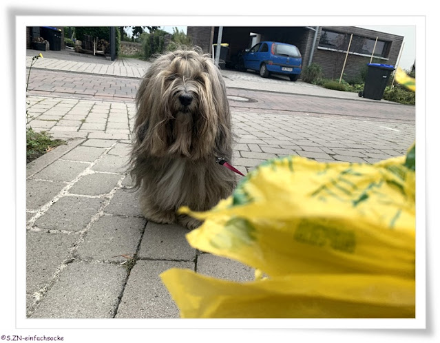 wir wünschen Euch zunächst ein frohes Pfingstfest. Wir haben den Tag - natürlich - mit Socke verbracht und sehr genossen. Socke geht es gut und nichts freut uns mehr. Es bedarf also keiner besonderen Erlebnisse, Unternehmungen oder Ausflüge, um voller Dankbarkeit die Zeit zu genießen. So gab es hier heute - neben vier weiteren Gassirunden - nur eine einstündige Kreisstraßenrunde. Darüber hinaus haben wir Socke heute mal wieder gebadet. Oft fehlt dazu die Zeit, aber heute konnten wir - wegen des morgigen Feiertages - uns die zeit nehmen.