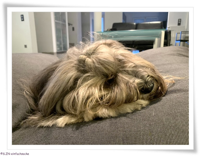 Socke hat den Socke-Halter so gut im Griff. Das genügt ein bezaubernder Blick und schon gibt es etwas Gutes. Nun, ich gebe Socke ja mittlerweile auch Leckerli zur Motivation des Weitergehens und sollte als nicht zu laut schimpfen. Wobei ER schon immer der Leckerliverschenker im Socke-Haushalt ist....