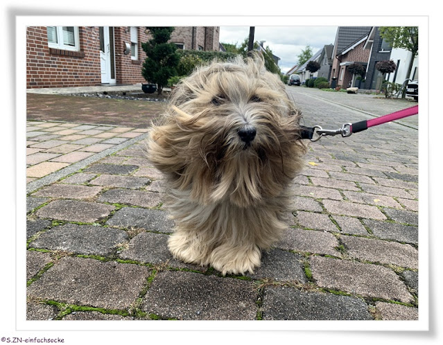 In dieser Straße hatten wir ein nicht so schönes Erlebnis. Ich weiß nicht, ob es es überhaupt berichtet habe, aber im letzten Sommer wurde ich von einem kleinen Mädchen mit ihrem Havaneserwelpen angesprochen und gefragt, ob Socke auch ein Havaneser sei. Ich klärte auf, und bat das Mädchen mit ihrem Welpen heimzugehen. Sie tobte nämlich seit gut 1,5 Stunden mit mehreren Mädchen und dem Hund durchs Wohngebiet, wobei eigentlich nur gerannt wurde und wenn der Welpe nicht mehr wollte, dieser auch unsanft hinterher gezogen wurde. Zudem wurde ständig auf- und abgesetzt und war wirklich völlig fertig. Ich war mit Socke und einer Freundin und ihren Hunden unterwegs und wir sahen das Elend. Ich erklärte noch ein paar Worte und wir gingen weiter. Eine Woche später wurde ich von der großen Schwester und deren Freundinnen gestellt und attackiert. Ich hätte das Mädchen traumatisiert, zum Weinen und dergleichen. Meine Freundin und ich versuchten zu erklären, aber die Beschimpfungen der Schwester nahmen noch zu. Man wolle das den Eltern sagen und die würden mir Bescheid geben. Ich bekundete meine Freude zu dem Vorhaben. Wir gingen weiter. Und genau diese Schwester war mit dem jungen Hund und ihrer Mutter am Haus. Ich wechselte die Straßenseite und ihr Hund lief über die Straße zu Socke. Diese wollte nicht beschnüffelt werden. Der Rückruf klappte nicht und so kam die Schwester zu mir, robbte nahezu durch meine Beine durch, um ihren Hund von Socke zu holen. Ich bemerkte, dass der Rückruf ja super klappt. Verkneifen konnte ich mir den Satz, dass zum Glück kein Auto gekommen ist und den Hund totgefahren hätte. Die junge Frau fing wieder an beleideigen dazu werden und ich verbat mir das. Die Mutter hat irgendwie gar nichts mitbekommen und fummelte die ganze Zeit an ihrer Luxuskarre herum. Die junge Frau sagte, ich sei die Frau, die... Ich dachte, jetzt geht es richtig zur Sache, aber man ließ mich ziehen. Vielleicht hat die Mutter ja verstanden, dass ich gar kein Unrecht hatte. Im Übrigen ist die Freude an dem Hund verschwunden. Das kleine Mädchen sehe ich nicht mehr mit dem Hund, wohl aber die Eltern. Ich werde im Übrigen nie wieder irgendetwas, weder Richtiges, noch gut Gemeintes sagen.