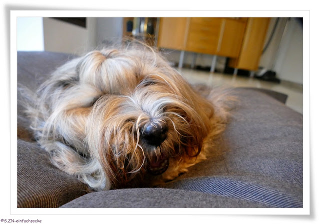 Am Nachmittag verknufte Socke - wie immer - eine Leckerei auf dem Sitzsack....