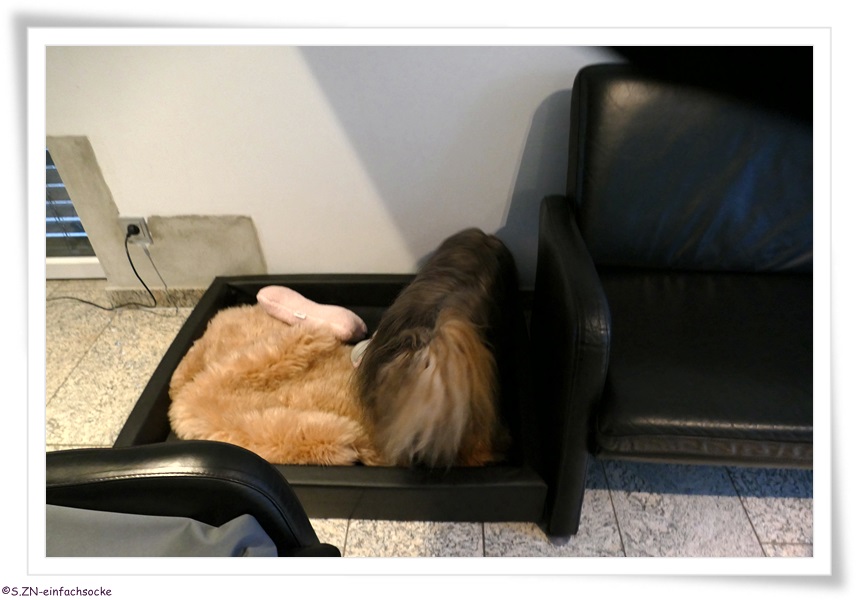 Später legt sie sich auf den Sitzsack. Ich decke sie zu. Nötig ist das vielleicht nicht, aber ich habe dabei ein besseres Gefühl, denn ich friere immer.