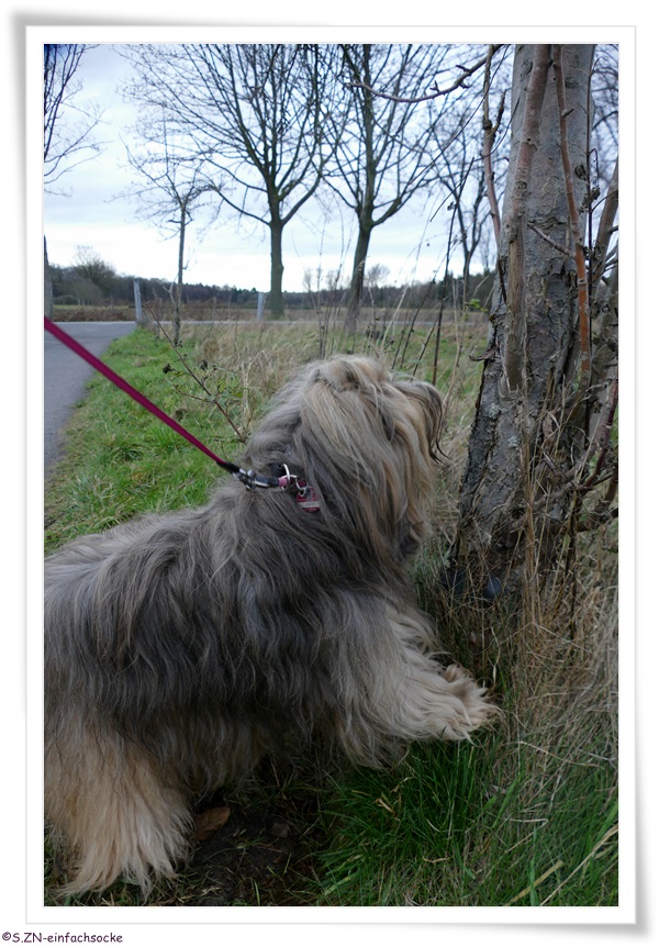 Dann ging es weiter mit der Schnüffelei. Mir war gar nicht bewusst, dass dort so viele Hunde herlaufen und ihre Nachrichten hinterlassen. Für Socke freute ich mich sehr.