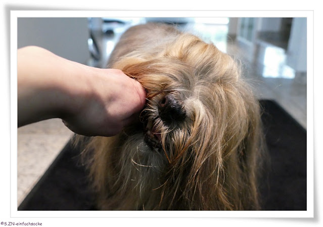 Socke wurde trocken geföhnt und bekam eine Leckerei, eigentlich viel zu früh, aber was soll es...