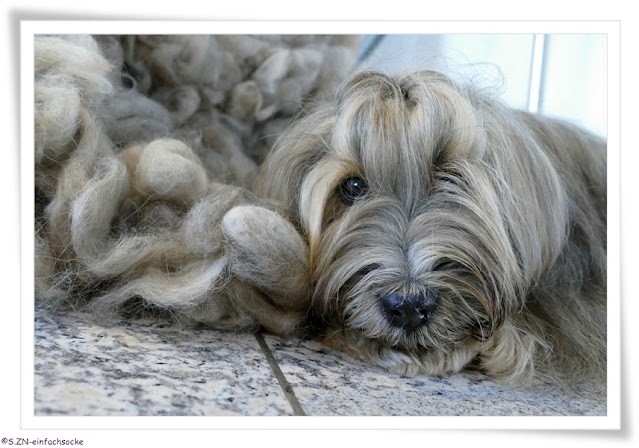 Socke fand kein Ende beim Schnüffeln ihrer Unterwolle. Ich wollte Ihr die Freude nicht nehmen..