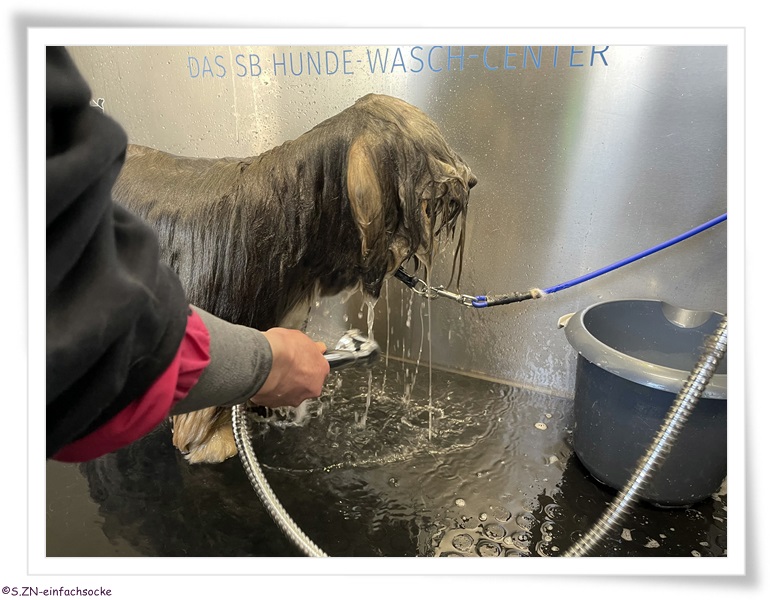 Socke und ich treffen Urlaubsvorbereitungen, wie das Reinigen der Gummistiefel...