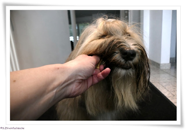| Und mit der Pfote wird die Verpackung festgehalten... |