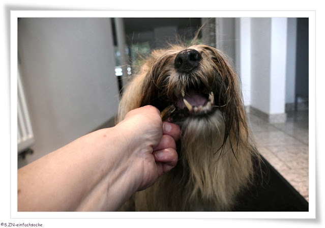 Und so bereitete ich mit dem vom Abendbrot übrig gebliebene Fleisch ein Schredderspiel für Socke vor.