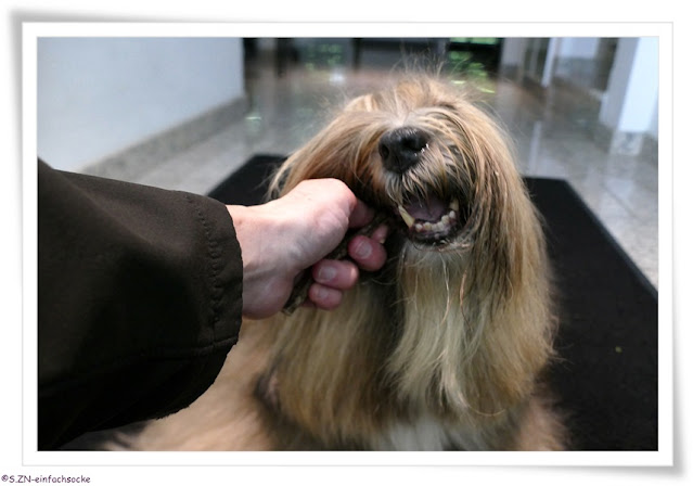 Socke erfreute sich eher daran, dass sie die Fellpflege überstanden hatte und auf ihre Belohnung wartete. Dieses bekam sie gleich im Anschluss....