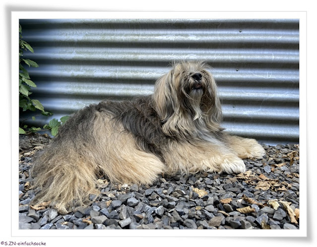 Und ich zog mit Socke auch noch auf eine Gassirunde... Wir versuchen Sockes Gassizeiten bestmöglich einzuhalten.... Je älter Socke wird, je wichtiger wird das...
