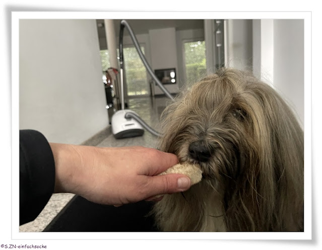 Insgesamt ist Socke aber auch mit ihren gut 16 Jahren und 8 Monaten gut dabei. Sie frisst, spielt und geht gerne lange, wenn auch langsam spazieren. Sie ist immer noch unendlich neugierig, liebt ihre mittlerweile vegetarischen Kekse und albert mit uns rum. Mögen dies noch lange Zeit so bleiben.... Bitte drückt uns fest die Daumen.