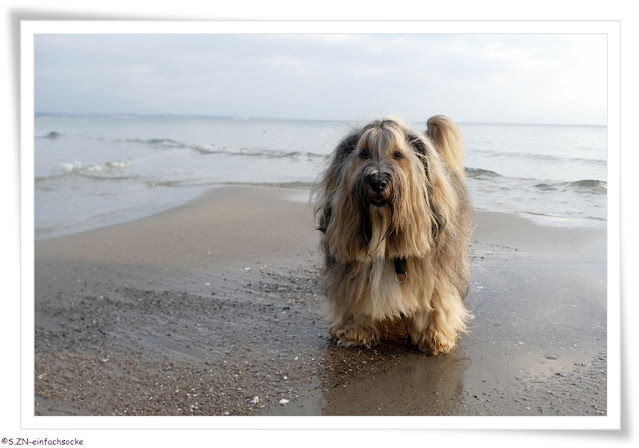 Wie hübsch Socke im Licht der Sonne am Strand aussieht...