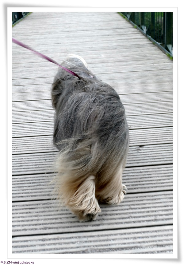 Es ist Sonntag geworden und ich zottelt mit Socke auf die erste Morgenrunde los...
