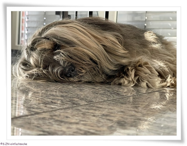Es ging nur eine Runde um den Block und Socke war fix und fertig als wir heimkamen...