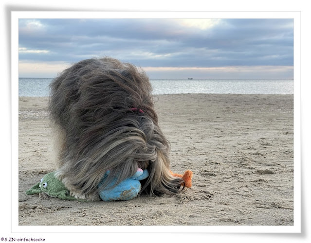 Nun folgen die Handybilder der Morgenrunde... Wir haben an diesem Morgen Krabbi, Tinti und Fischi mit an den Strand genommen.