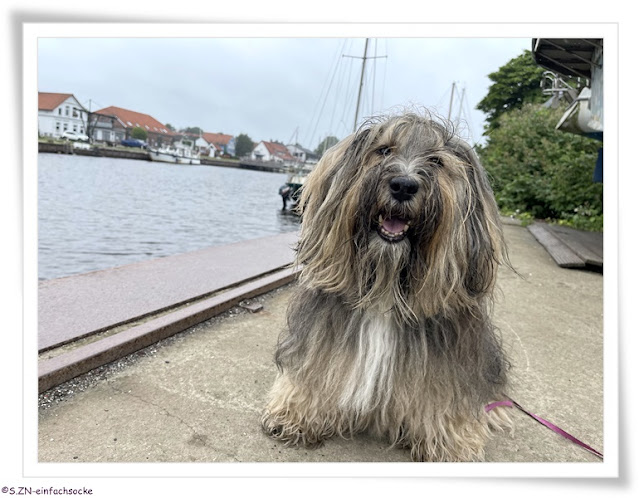 um einige Fotos zu machen, nahm ich Socke von der Leine... Wir waren im Übrigen fast alleine am Strand...